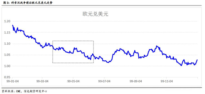 综合来看,本次油价的走势与宏观经济走势基本一致。相反,由于战争发生在欧洲大陆,因此欧元的走势受到比较大的影响。欧元兑美元的走势也处于下跌通道,从战前的1.1下跌到战后的1.02。