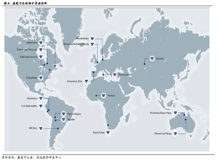 截至目前,嘉能可是全球第一大锌生产商。嘉能可“贸易+自产”的锌交易总量、自有资源以及储量分别占全球的35%、10%和9%。根据麦肯锡及其他分析机构数据表明,嘉能可还掌控着全球约半数的锌金属和锌原料(中国产量除外),可以说嘉能可在全球锌产业链扮演着举足轻重的角色。