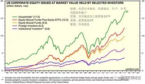 图27:美国股票市场各投资者持仓市值,股票基金ETF在09年后飙升