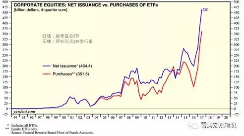 -被动式投资盛行,在过去12个月内,投资者累计赎回了3080亿美元主动型管理基金,将3750亿美元资金投向了被动式的共同基金和ETF;