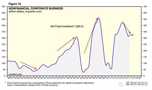 -劳动生产率同样从08年金融危机的谷底缓慢回升,私人投资刚刚启动不久,不存在99年过度投资的现象。新一轮的技术革命仍在萌芽状态,投资回报率的长期趋势性下降使得大量低成本的资金被用于股票回购,而不是要素投资;