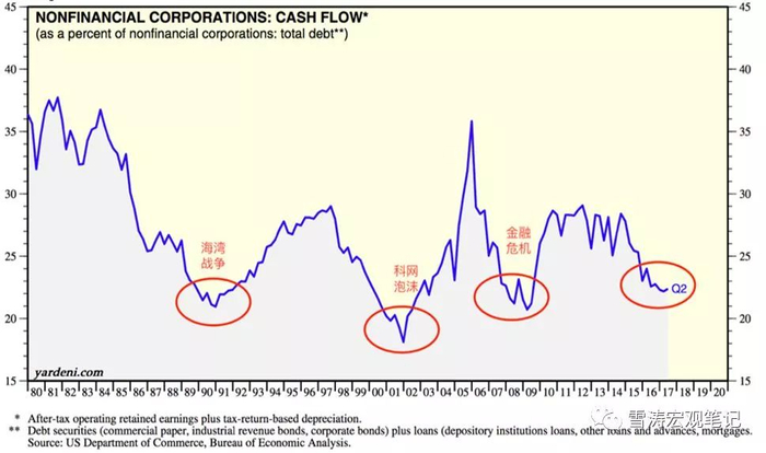 高杠杆一定程度上加剧了整个金融体系的正反馈效应。一旦流动性环境变差,企业盈利和产生现金流的能力下降,企业既无力持续借贷回购,高杠杆亦对负债成本产生额外负担,从而每股盈利遭受分子和分母的双重打击。2016年9月-2017年9月,标普500指数企业的回购比下滑了5.3%。