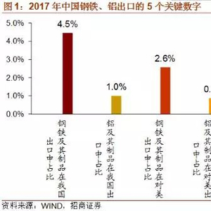 几个数据来看对中国钢铁和铝业的影响几何:2017年中国出口钢铁总量7280万吨,未锻轧铝及铝材出口483万吨;1月美国钢铁协会发布公告称,2017年美国的钢铁总进口量达3812.1万吨,进口来源国依次是:韩国375.3万吨,土耳其219.1万吨,日本150.4万吨,德国140.5万吨,中国118万吨。2017年钢铁及制品在我国出口中占比4.5%,在对美出口中占比2.6%,铝及其制品在对美出口中占比1.0%,在对美出口中占比0.9%,钢铁占比略高,铝占比较低,而黑色金属冶炼及加工行业的主营收入中,仅有3.3%来自出口,即行业中出口比重较低,这样来看,单一政策的影响有限。