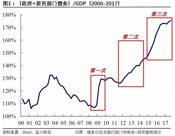 所以,杠杆看起来危险,背后却很诱人,每个人都想加杠杆,而那些从不加杠杆的人,结局好像也不怎么好。在2017年之前,从地方政府到实业巨擘,从商界大鳄到平民百姓,无一不是这么想。事实上,从2008年开始,中国经济经历了三次明显的“加杠杆”。