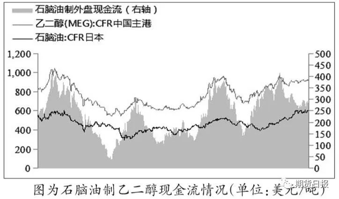 目前生产规模最成熟、应用最广泛的是传统乙烯法(石脑油制和外采乙烯制乙二醇)。下面主要比较石脑油制和外采乙烯制乙二醇的现金流情况。