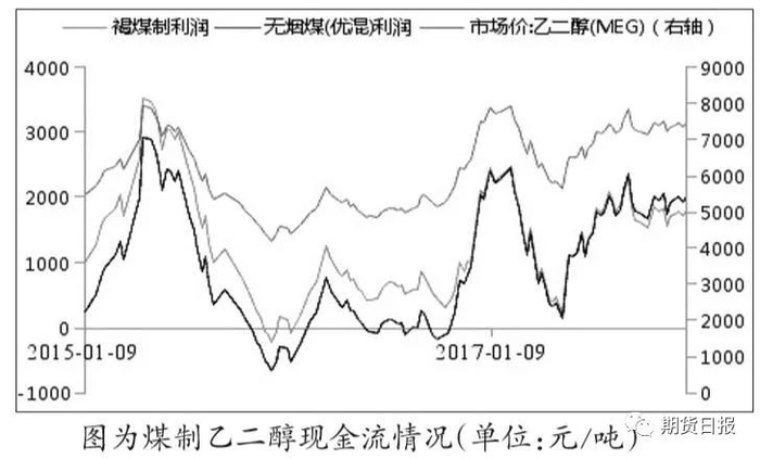 目前石脑油制乙二醇生产利润仍较高,外购乙烯制乙二醇一直以来现金流情况不佳,2017年二季度由于乙烯价格大幅下跌,外购乙烯制乙二醇现金流才有所恢复。