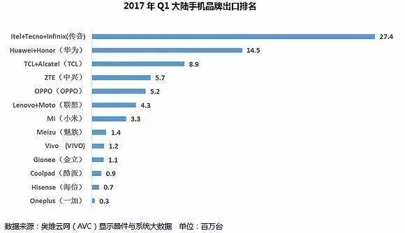跟这些手机比起来,还有一个国产手机品牌,去年一年就出口了1亿多部,不仅出口量超过了“老大”华为,更是在全球第2大手机市场——非洲,硬生生把三星、苹果这俩“国际巨头”拉下马,市场占有率第1。