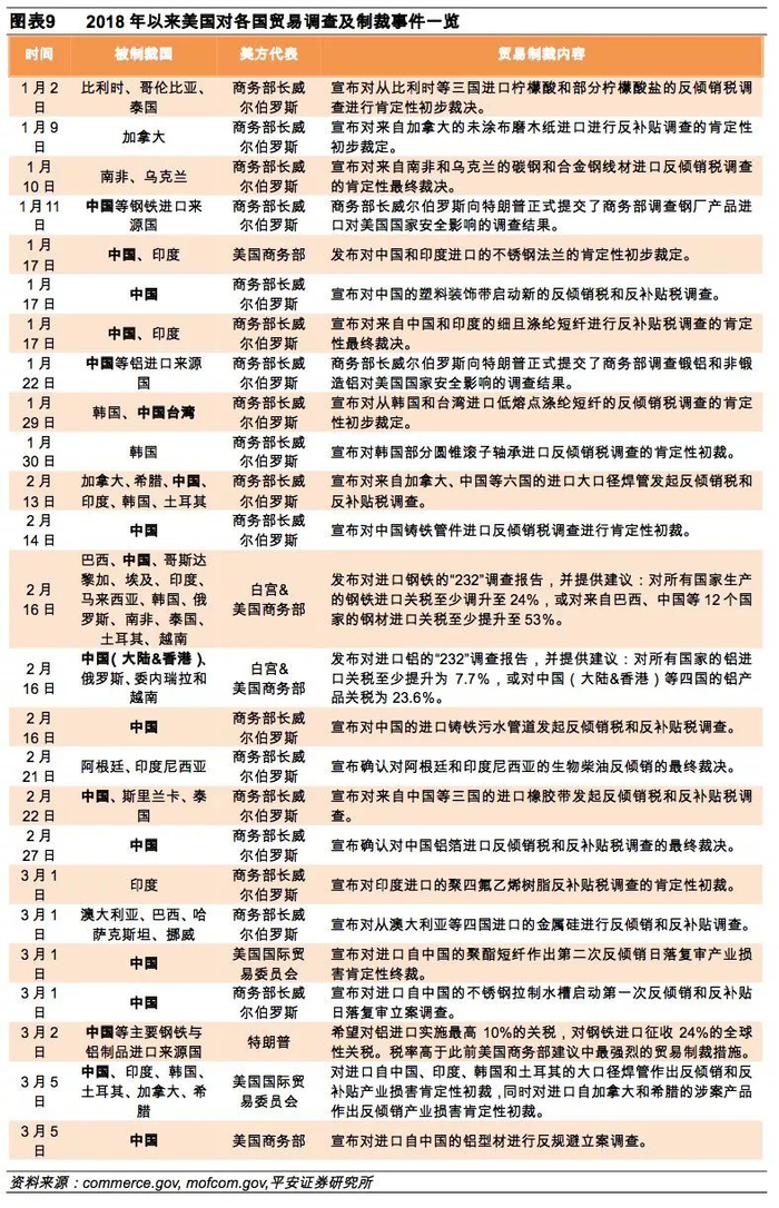 无论是从美中贸易逆差的绝对规模还是相对规模来看,中国都有极大可能成为美国此轮贸易战的重点目标对象。从2018年美国对各国展开的贸易调查及制裁事件也可以看出,中国是近期美国政府开展贸易战的重点对象之一。
