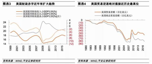 随着美联储加息常态化与缩表计划的实施,美国难以继续利用宽松货币政策来刺激需求进而拉动经济增长,财政政策成为白宫首选的推升经济增长方式。2017年末,特朗普税改计划终于通过国会审议,成为特朗普上任以来的首项政治成就。