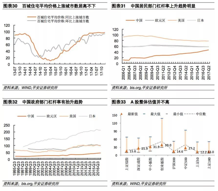 目前来看,中国房地产市场整体得到较好的管控,在限购限贷等严格措施下,整体房价上涨的势头也得到了遏制。但2017年以来,三四线城市去库存与棚户区改造不仅带来了当地房地产价格的上涨,还提升了居民杠杆率。考虑到三四线人口净流出及居民偿债能力有限的背景,我们认为三四线房地产市场累积的潜在风险在加大。另外,近年来PPP模式的广泛推进拉升了地方政府的杠杆率,不仅增加了金融潜在风险,还降低了未来抵御风险事件的投资能力。