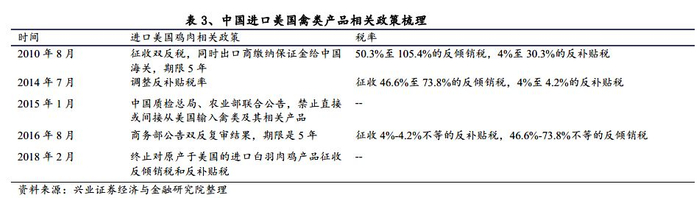 2018年2月27日,商务部发布公告称,从即日起将终止对原产于美国的进口白羽肉鸡产品征收反倾销税和反补贴税。