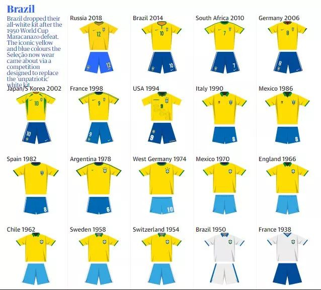 从世界杯诞生至今,除了津津乐道的绝杀和球星们在大众心中神一般的存在,对于各参赛队球衣的狂热追捧,也始终如一。每一届世界杯队服,不仅了融合代表国家传统文化与人文精神元素,还紧跟流行趋势的大方向,常常于细节处引领时尚潮流。