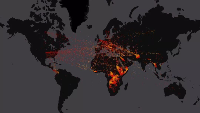难以割舍的背井离乡 2000年到2016年间全球难民的流动情况 (© Map visualization: Records from UNHCR/EarthTime visualization by Carnegie Mellon CREATE Lab)