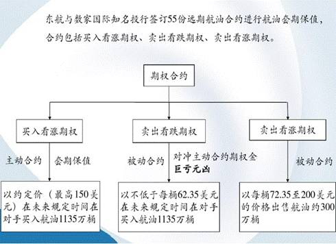 东航签订的这一套套期保值协议,买方和卖方的权利不对等。首先,协议双方买入和卖出的原油数量是不同的,东航行权需买入的航油数量为378万桶/年,而协议对方的买卖数量最多为100万桶/年;其次,如果油价上涨,买方会支付一定金额给东航,东航可以获得一笔权利金,但对方是否会行权却不由东航决定。