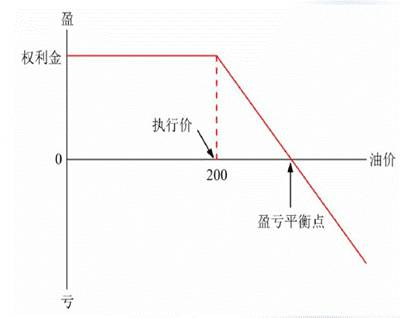 若合约价格P大于200美元/桶,合约对手可以选择行权,向东航以(P-200)美元/桶买入航油,东航亏损(P-200)美元/桶。若油价位于(72.35-200)美元/桶区间,对手既可以行权又可以不行权,东航均收益权利金。若油价P小于72.35美元/桶,对手选择不行权,东航获取权利金。