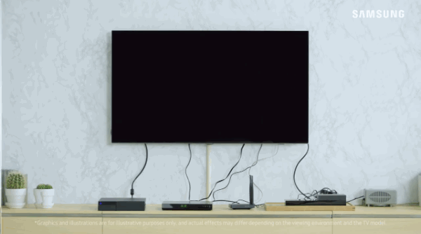 以前的电视要接一堆电缆,为了让它像个真正的画框,三星把他们整合成一条细细的 15 米线缆,不仅能传输视频信号,还能传输电源。