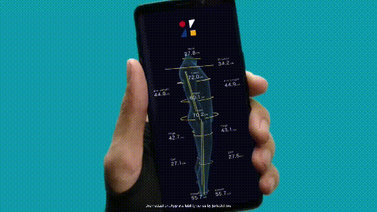 它上面的小点点,其实是内置的 150 个传感器。它会对你进行全身测量,并将具体数据发送到配套的应用程序当中。
