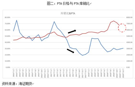 图二的数据是我们在18年12月初统计的。在图中,我们预测12月份PTA库销比仍会缓慢增加。按照反向关系的逻辑去推断,那么PTA价格在12月份也应跟随规律出现继续回调的行情。