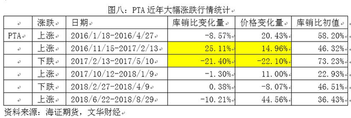 如图八所示,我们整理了近年来PTA的6次相对较大的涨跌情况进行统计,虽然数据样本相对较小,但是仍然可以得出以下结论: