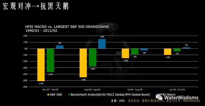 2. 宏观对冲在经济/金融危机或黑天鹅中一般实现正收益,有极强的尾部风险管理能力。