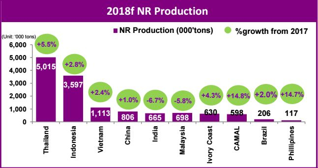 从2009年起,柬埔寨、菲律宾、孟加拉国和缅甸也陆续加入该组织,截至2018年底,该组织成员国已经达到13个,2017年该组织成员国天胶产量占全世界的90%。其中,泰国、印尼、马来西亚三国全球占比69%;越南、中国也是重要的天然橡胶生产国,产量位于全球第三、四名。
