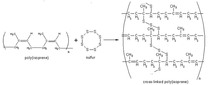 含有碳-碳双键虽然使得天然橡胶怕氧化,但也带来了另外一项宝贵的性质:硫化。硫化的天然橡胶,每200个碳原子只会有一个会和硫产生反应,但如此,便足以产生硫化天然橡胶和天然橡胶极大的不同。经过硫化的天然橡胶,宛如经过火炼的真金一般,其韧性上了一个新台阶。