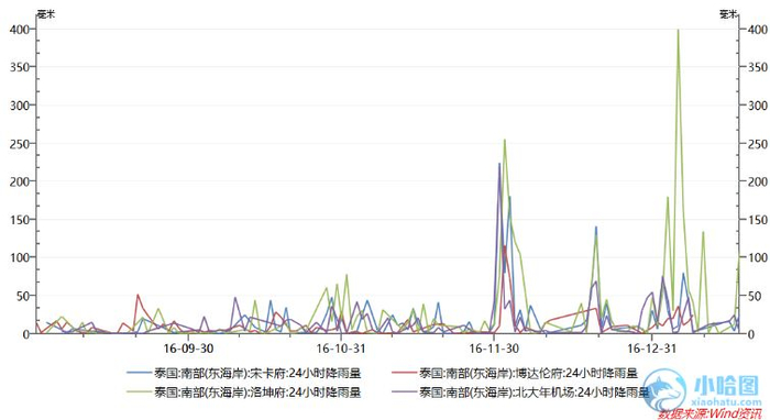 “屋漏偏逢连夜雨”,前文已经提到过,从当年12月到次年的1月,全球最大的产胶国泰国在本应少雨的干季,遭遇了多年罕见的暴雨,并引发了洪灾,不但影响橡胶生产,而且对交通运输造成了很大影响。