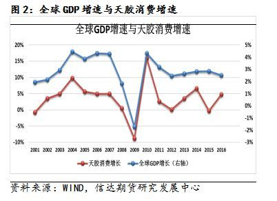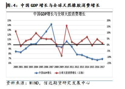 2000-2011年,中国GDP保持8%以上的高速增长,天然橡胶消费量由不到150万吨大幅上升至400万吨左右,全球天胶消费在同时期也保持较高的增长速度(除了金融危机时期)。