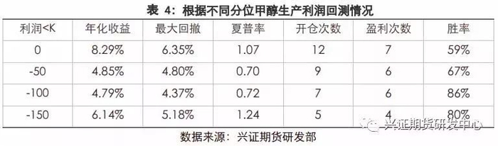 我们也将遍历在甲醇制烯烃利润不同位置开仓,观察因子是否能够稳定有效。