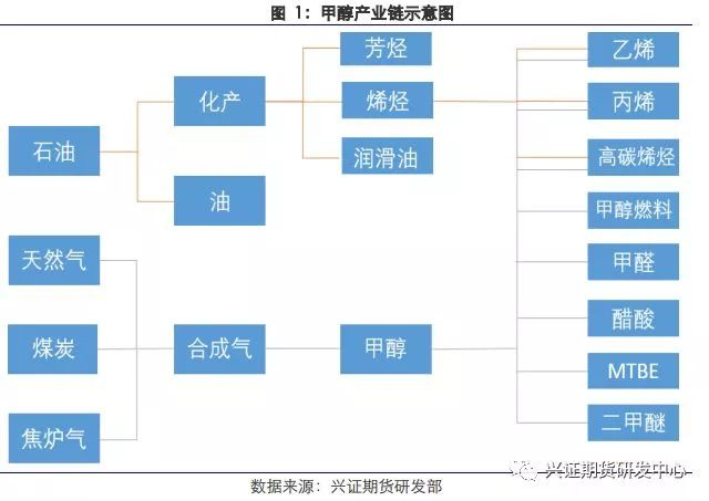从市场行为来看,甲醇价格主要受产业链基本面的影响,价格有顶有底。甲醇产业链的关系主要如图1所示,我国主要以煤制甲醇为主,占比超过70%,此外天然气与焦炉气也是甲醇重要原料。甲醇的下游主要分为以甲醛、二甲醚为代表的传统下游和以烯烃和醇基燃料为代表的新兴下游。总体来说,甲醇价格主要受市场因素影响,根据上下游利润的传导,供需的松紧程度等等发生变化。