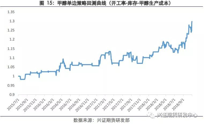 3.1 基于甲醇大致生产利润(甲醇大致生产成本)的单边做多策略