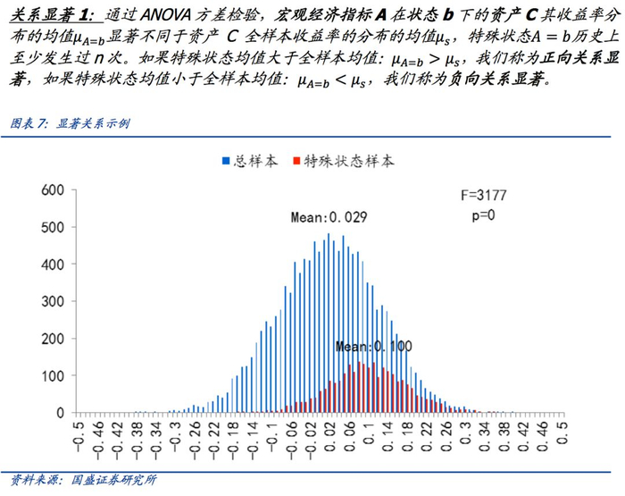 本报告的研究思路也将遵循这种状态匹配的思路,所谓的状态匹配即划分宏观经济指标的状态,研究不同状态下各类资产表现的差异。我们将通过批量的处理,获得任一种经济指标的状态划分,在不同的状态划分下检验资产价格涨跌幅的共性特征,从而搜索所有统计显著的宏观指标状态-资产价格表现关系。