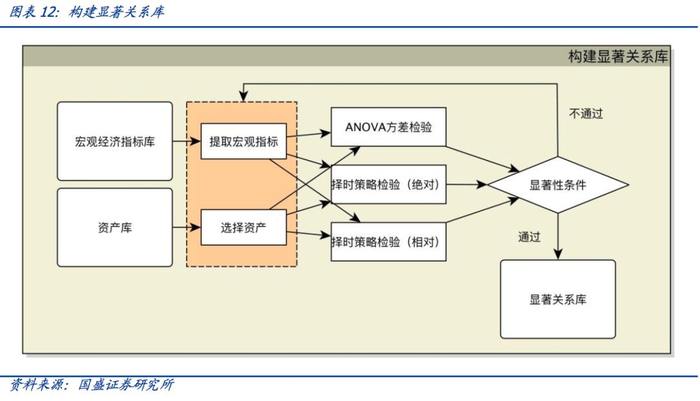 我们采用两种方式进行匹配关系显著的定义:ANOVA方差检验法和择时策略检验法。ANOVA方差检验法简单直观,但不考虑信号在时间序列上的分布,导致获得的结果一般用于事件性的增强。择时策略检验法从实际操作的角度出发,覆盖整个时间序列,并且考虑到了某些影响的不对称性。