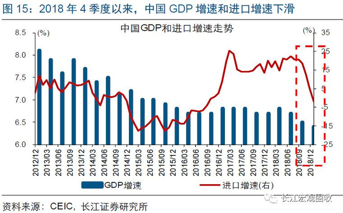 【图13】中国GDP和进口双双增速下滑 【来源:长江宏观固收】