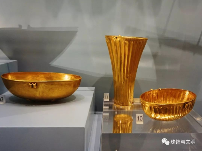 黄金器皿包括:金杯、金碗、金盆、金壶等(10,11,12)。