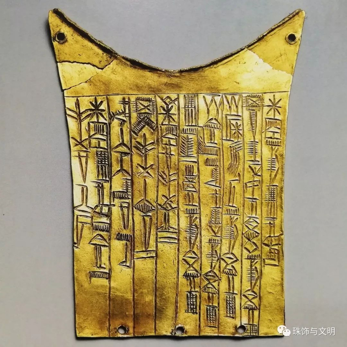 两河文明乌玛古城遗址,出土乌玛王后楔形文字黄金祭牌(2),这些都是苏美尔黄金艺术的重要代表。