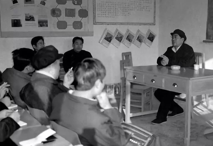 1989年,王乐义(右)召集村里党员推广大棚蔬菜种植