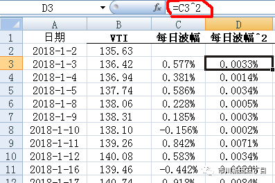 步骤 3: 计算日价格涨跌幅的平方