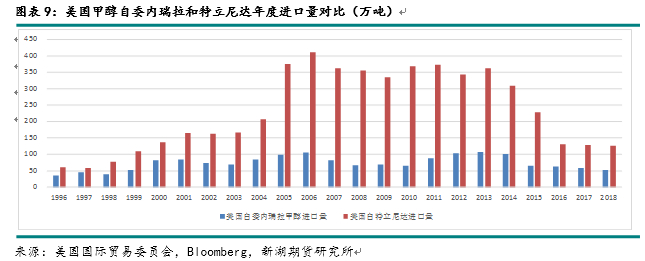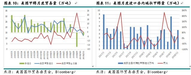 长期来看美国整体净出口增加将是趋势,而短期来看,美国对委内瑞拉的进口需求下降将有更快的体现。2019年初美国加大对委内瑞拉的制裁力度,1月底美国宣布禁止PDVSA的原油出口到美国,在美国停止进口委内瑞拉原油后,部分银行开始限制对委内瑞拉出口贸易的信用证开立,运输公司也出于收款方面的担忧停止运输委内瑞拉货物,因此这一禁油令间接影响到委内瑞拉的甲醇出口。