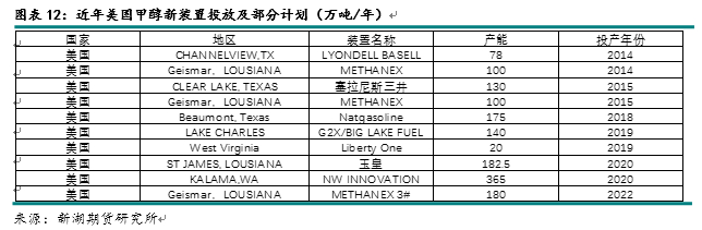 近年来美国甲醇新装置的持续投放是导致上述改变的主要原因。2014-15年期间美国新增甲醇产能400万吨/年,2018年再次进入投放周期,2019年-2022年期间还将有约800万吨/年产能投产。预期未来美国对外部市场的净出口量将进一步提高。