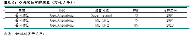 委内瑞拉主要有两家企业(三套装置)生产甲醇,其中装置Supermetanol和Metor 1在1994年投产,另一套较新的Metor 2装置在2010年投产。两家企业都位于委内瑞拉东北部沿海安索阿特吉州的何塞·安东尼奥·安索阿特吉综合石油化工基地。