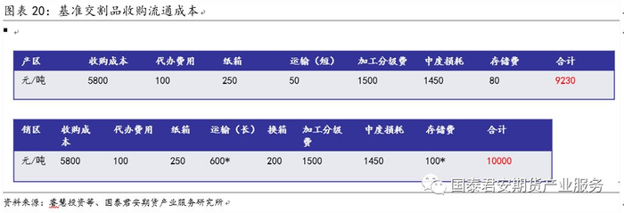 注:1)销区运输费用不同季节不同,一般中秋节和春节前后运费较高,1-2月700-900元/吨,3-5月500-600元/吨,6-9月400-500元/吨、10-12月600-700元/吨。