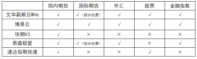 就上述5款软件的功能对比来说,文华赢顺云及博易云在行情方面还是有着极大的优势,市场受众占比也是当前最大的。这两款软件,支持国内期货、国际期货、外汇、股票、金融指数等行情数据及图表显示,支持24小时全球品种看盘需求。(PS:文华财经部分外盘实时数据已于2019年5月27日收费)。