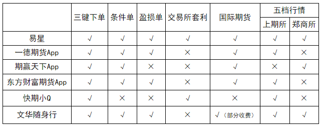 通过对比,易星手机软件在下单及五档行情中有着明显的优势。条件单、盈损单、交易所套利、国内外行情及交易所五档行情(上期所和郑商所)一应俱全,在手机交易软件功能上可以说相当全面。