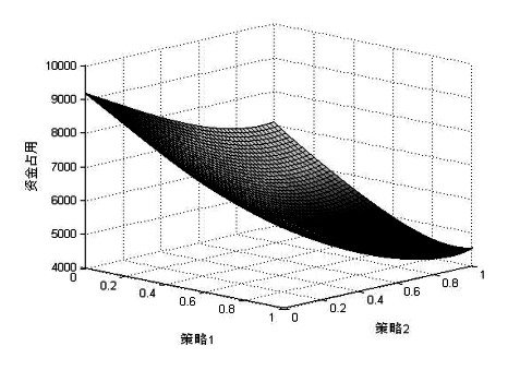 关于局部最优解问题,在本模型中,参数的实际意义是策略的资金占用额,都为普通的常数,并且x代表策略的数量,无二次项三次项,因此即使模型是多元的,其函数图像也不会出现“坑坑洼洼”的情况。以上面的例子为例,用图像表示结果如下: