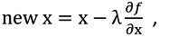 为目标函数在初始值处的导数,λ可以理解为影响初始值变化速度的参数,λ越大,x变化的速度越快,λ的值可以自由设定但一般函数包中都会自动帮我们选择合适的λ。