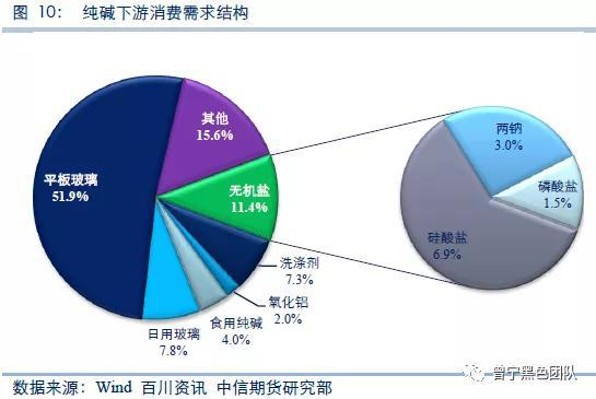 纯碱下游行业在轻、重碱使用方面有明确的要求,很少出现轻、重碱混用的现象。纯碱的下游行业中,平板玻璃行业是重碱最主要的消费者,日用玻璃、洗涤剂、氧化铝等行业则主要消费轻碱,无机盐领域部分企业采用重碱,部分企业采用轻碱。