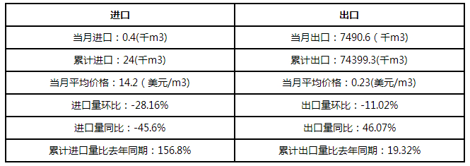 10月氧气出口22.5万立方米,环比减少33.7%。出口总金额是122489美元,均价为0.5美元/立方米,环比持平。