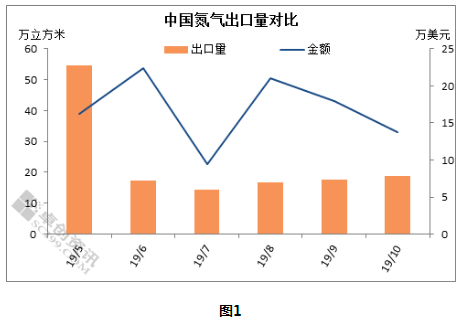 [导语] 2019年10月中国氮气出口量延续小幅增加的态势,环比9月增加6.72%,这与10月氮气出口单价下降密切相关。