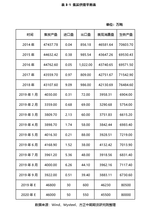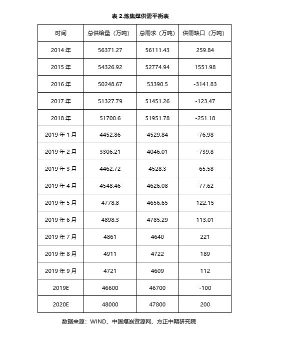 2020年是十三五收官之年,回顾“十三五”时期煤炭工业发展主要目标,到2020年我国煤炭产量到达39亿吨目标基本实现,则2020年我国原煤产量增速将达到5.4%,2020年炼焦煤整体供应量将随煤炭增加而增加,整体将出现供应过剩的局面,若2020年原煤产量增速下滑,炼焦煤供应将维持平稳,价格也将维持相对平稳的波动。